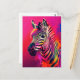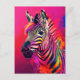 This Splashy Rainbow Zebra postcard features a colourful and whimsical illustration of a zebra with a rainbow mane. The postcard is made of high-quality cardstock. It's perfect for sending a joyful message to a friend or loved one, or for adding a touch of fun to your wall or bulletin board as a decoration. The back of the postcard has a standard postcard layout for writing a message and addressing. Send a smile today with this one-of-a-kind Rainbow Zebra postcard!