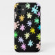 A multicolored splat design against a black background. The random geometric pattern is made up of different pastel colours making a fun and funky abstract design
