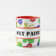 Splat! Wet Paint Mug - This unique mug is designed to resemble a freshly painted surface, complete with colourful splatters and a warning label that reads "Wet Paint" (text customisable). A playful and humourous design, perfect for artists, painters, and anyone who loves a touch of whimsy in their daily routine. The interior colour can be customised to match your preferences, and rest assured, it's safe to use and drink from.