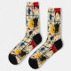 Unleash your creativity with these splatter art socks, showcasing bold paint splashes and intersecting geometric lines on a cream background. Featuring a vibrant mix of red, blue, yellow, and black, these socks blend artistic chaos with structured design. Perfect for art enthusiasts and fashion-forward individuals, they add a dynamic and expressive flair to any outfit.
