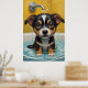 Cute adorable animals sitting in a bathtub, with water droplets and bubbles around it. The artwork image looks at the viewer with wide, innocent eyes, and its little feet rest on the edge of the tub. The overall atmosphere is cute and humourous, making it ideal for a poster set.