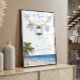 Adorable baby shower welcome design featuring a sweet nautical clothesline with baby shorts, a bib, and a life preserver in soft blue watercolor tones. The tropical palm tree and peaceful shoreline create a light oceanfront feel, while the airy pastel palette adds a fresh and elegant touch for a baby boy celebration. This charming poster is perfect for ocean, seaside, nautical, tropical, or beach baby shower themes and uses a broader mix of search-friendly keywords to help reach more shoppers.