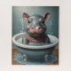 Adorable pets sitting in a bathtub, with water droplets and bubbles around it. The puppy looks at the viewer with wide, innocent eyes, and its little paws rest on the edge of the tub. The overall atmosphere is cute and humorous, making it ideal for a poster set.