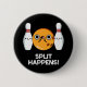 Split Happens Funny Bowling Pun Dark BG 6 Cm Round Badge