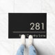 Just picture the sweet feeling of entering the house you now own and having something to make you think that this house is really yours. This doormat comes in handy to symbolise the beginning of the new chapter in people’s life. This doormat is perfect for welcoming people in to a new house, a new beginning or the coming together of two families. Looking simple and modern, this black custom doormat is split and has the house number as well as the street name or family name. Order yours today and add that special touch to your doorstep!
