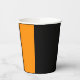 Split half orange half black paper cup for a stylish kid or adult halloween party. Minimalist halloween colour theme party supply collection.