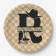 Split Monogram Letter "R" with cowboy boots and hat on rustic chequerboard background. Personalise with family or business name