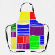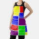 This apron has a Bauhaus design of rectangles divided into ever smaller pieces in red, yellow, blue, green, purple on a field of white.