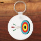 The target for a bow and arrow with two perfect bulls and a splitting arrow