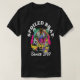 I give wanted to give this a 4 instead of a 5 because these Basic DARK T0shirts run unexpectedly SLIM or Narrow. Which is great if you do not have a potbelly, but I have a paunch. It isn't the shirt's fault that I've got a beer belly. The design and shirt itself is a quality cotton shirt. The color is more of a deep purple, but still a very pretty color. The Basic DARK T-shirts run a bit SLIMMER than the Basic Ts. The neck is a fraction narrower (or seems to be narrower) also. I'm a paunchy middle-aged woman and my neck is 12 inches (31cm) thick and the neckline fell about the same as in the photo of the man, and I had the desire to tug it a bit. So if you're a thick necked man or like loose shirts, be aware these are slimmer shirts. Once I get rid of my lockdown paunch it'll look great. The shirt washed well in cold water with no apparent bleeding. We don't have a dryer, so it hung dry. Did not shrink. Love the colors and the design. The design looks smaller on my shirt than it does on the model on-line. But still, it looks good on the shirt. The printing looks as it does on the model, just the size seems fractionally smaller. Washed garment in cold water, hung dry and design appeared unaffected.
