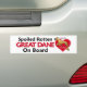 Let every one know that your SPOILED ROTTEN Great Dane is on board with this Bumper Sticker featuring the Danes-R-Us "I Love My Great Dane" graphic with big red heart & leaping dane.