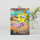 Bold, colorful text elements are arranged throughout the design, highlighting the birthday child’s name, age, date, time, address, and RSVP details. The overall style is whimsical, energetic, and inviting—perfect for a kids’ birthday party invitation, printable card, or digital party announcement.