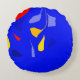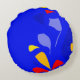 Brightly red, blue, orange and yellow coloured leaves peek out from this blue round pillow.