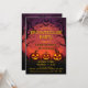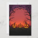 Unleash a "Spooktacular" celebration with this Halloween birthday party invitation. The design features a dramatic twilight sky in fiery orange and purple, with silhouetted bats swarming overhead. Gnarled, bare trees frame the card, leading your eyes down to three classic, grinning jack-o'-lanterns that anchor the scene with festive cheer. This is the perfect invite to set a fun, spooky tone for your special event.