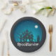 Spooktacular Blue and Black Haunted House Paper Plate