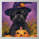 Spooky Affenpinscher Halloween Witch and Pumpkin Poster