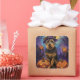 Spooky Airedale Halloween Witch and Pumpkin Square Sticker