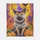 Spooky Akita Halloween Witch and Pumpkin Fleece Blanket