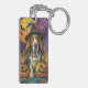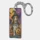 Spooky Basset Hound Halloween Witch And Pumpkin Key Ring