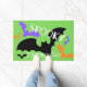 The Spooky Bats Green door mat has vivid graphics that add to your Halloween decor.