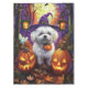 Spooky Bichon Frise Halloween Witch And Pumpkin Tablecloth