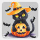 Spooky black cat & pumpkin Halloween Square Sticker