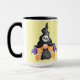 Spooky Black Halloween Witch Gnome With Skull Mug