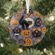 Spooky Cats Pumpkins Purple Pattern Glass Tree Decoration