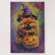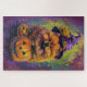 Spooky Chow Chow Dog Halloween Witch And Pumpkin Jigsaw Puzzle