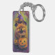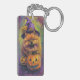 Spooky Chow Chow Dog Halloween Witch And Pumpkin Key Ring