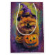 Embrace the Halloween spirit with this enchanting design featuring a cute dog in a witch hat surrounded by carved pumpkins. Perfect for adding a touch of spooky charm to your festive celebrations.