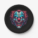 Spooky Creepy clown face with glowing eyes Halloween party paper plates.