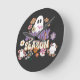 Make your Halloween decor truly spooktacular with our Trick or Treat Spooky Cute Ghost Halloween Wall Clock! This delightful clock features a groovy-style ghost surrounded by colourful flowers and the phrase "Trick or Treat," set against a classic black background. It’s the perfect way to add a whimsical and festive touch to your home, office, or any space that needs a bit of Halloween spirit.