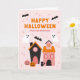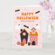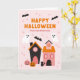 Adorable Halloween Haunted Houses Greeting Card design with spooky houses, jack-o'-lanterns, ghosts, black cats and bats. You can personalise the outside of the card with your name, and the inside with your own unique message.