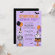Celebrate your little one’s special day with this adorable Halloween-themed birthday invitation! Featuring a friendly skeleton holding a black balloon and a happy ghost on a birthday cake holding orange and lavender balloons, this design is set on a soft lavender background with scattered stars and bats for a playful, festive touch. Perfect for a spooky-cute October birthday, costume party, or Halloween celebration. Personalise the text for your child’s name, age, date, and party details to make it uniquely yours!