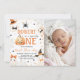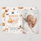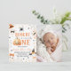 Celebrate your little pumpkin’s first birthday with this adorable spooky photo invitation. Featuring watercolor ghosts, pumpkins, bats, and cobwebs in soft pastel tones, this design combines sweet and spooky vibes. Personalise with your child’s photo and party details for a memorable first “boo-day.” Perfect for a Halloween-inspired first birthday celebration.