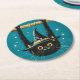 Spooky Flying Black Cat Witch Round Paper Coaster