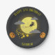Get ready for a spooktacular celebration with these Halloween-themed birthday paper plates. It features a playful black cat in a pointy hat soaring on a broomstick against a glowing full moon. Customise each plate with names and messages for a unique touch and bring festive fun to your party table. Make your kids' birthday party unforgettable with these charming paper plates.