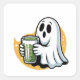 Spooky Ghost Drinking Matcha Halloween Square Sticker