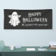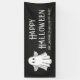 A Cute and Spooky Halloween ghost on a black and white party banner.