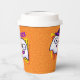 Decorate your spooktacular Halloween party with these party cups featuring a cute ghost character, bright orange background, and retro 90's inspired design elements. Text includes the phrase "Happy Halloween" and "Boo!" to add an extra bit of Halloween flair. Perfect for any kid's Halloween party, birthday party, or fun event.