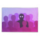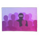 Spooky ghost pillowcase with a geometric conceptual illustration of a ghost and shadow like human figure in a crowd of people. The different person is a dark, black figure with glowing eyes. It stands out from the crowd, which consists of purple humanoid shapes. Though alone, the different one is happy to be a weirdo. This creepy cool design has beautiful purple violet tones.