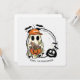 Make Halloween sweet with this spooky ghost round sticker. Featuring a ghost in a cap holding a pumpkin full of candy, this design is perfect for treat bags, party favours, and scrapbooking.