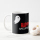 Cute cartoon ghosts wandering over the rooftops at halloween night