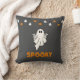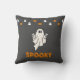 Spooky Ghost with Jack-O' Lanterns Grey Halloween Cushion