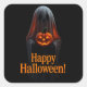 Spooky Ghost with Pumpkin – Happy Halloween Square Sticker
