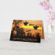 Halloween card featuring an image with black silhouettes of spooky ghosts, bats, tombstone, spider, creepy tree and more on Halloween night. Select from matte or glossy style card.