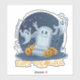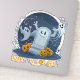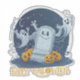 This is a cute Halloween sticker that features spooky ghosts and flying and "booing" around on a grave yard. You can customise the default text "HAPPY HALLOWEEN".