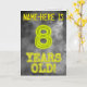 The front of this spooky looking, personalised birthday card design features the message "8 YEARS OLD!" with characters and digits having an eerie glowing aura inspired look, on a mysterious grey cloudy mist-inspired background pattern. The front also features an editable recipient name. The inside features an editable birthday greeting message. A customised birthday greeting card like this might be used to send a birthday greeting message to somebody who is celebrating their 8th birthday. [~Z0000365]