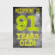 The front of this spooky looking, editable birthday card design features the message "91 YEARS OLD!" with characters and digits having an eerie glowing aura inspired appearance, on a mysterious grey cloudy mist-inspired background pattern. The front also features an editable recipient name. The inside features a personalised birthday greeting message. A personalised birthday greeting card like this might be given to celebrate somebody’s ninety first birthday. [~Z0000365]